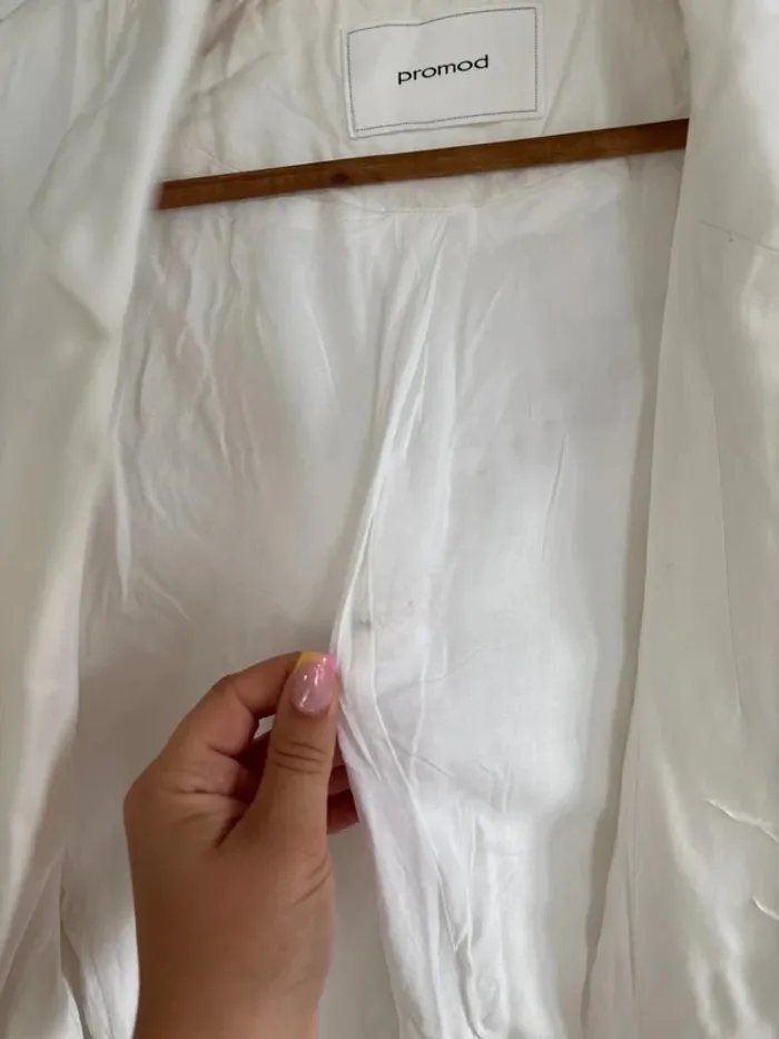 Veste blazer blanche Taille 42 Promod en bon état : une tache dans la doublure intérieure + plis « collés »