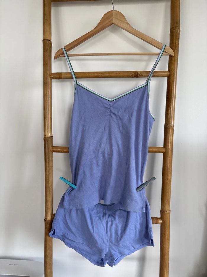 Pyjama short + débardeur Undiz taille L neuf Couleur : lima / bleu (la couleur réelle est plus claire que sur les photos) Appartenant à une personne fumeuse, je l’ai lavé. Mais il faudra le relaver.