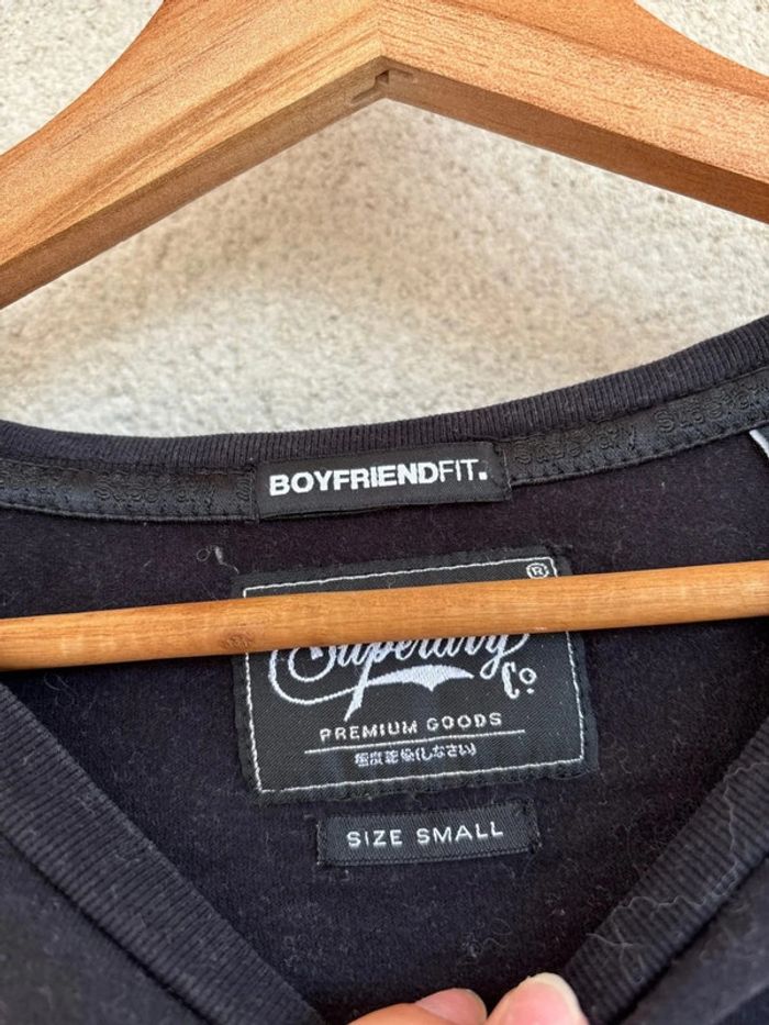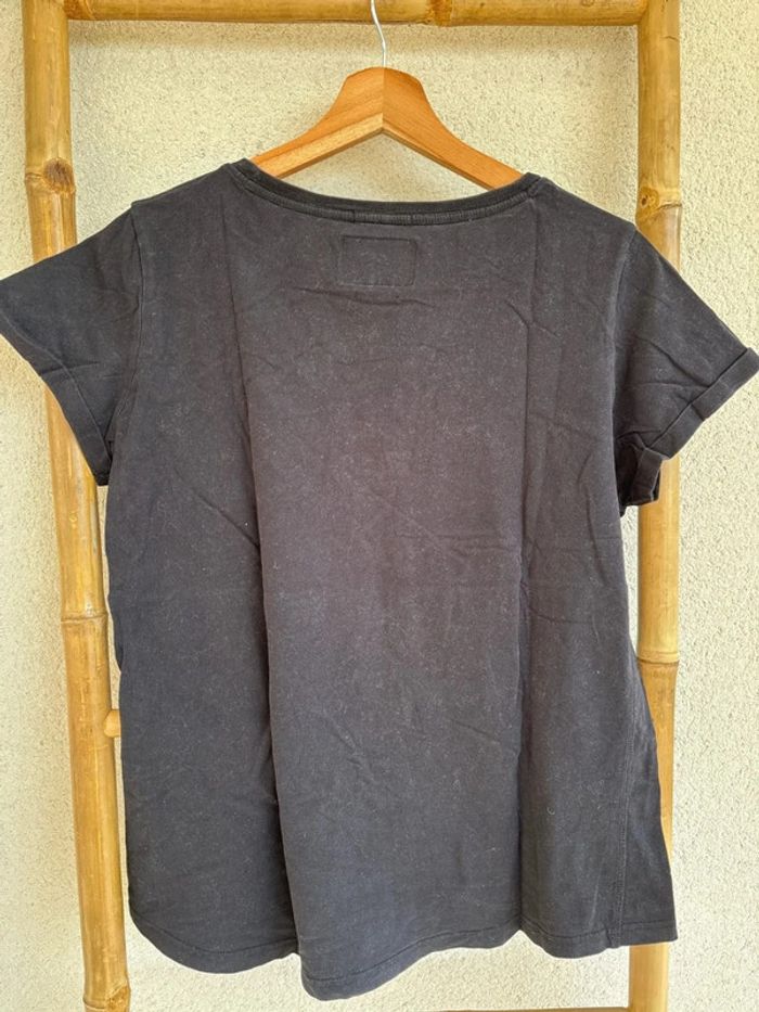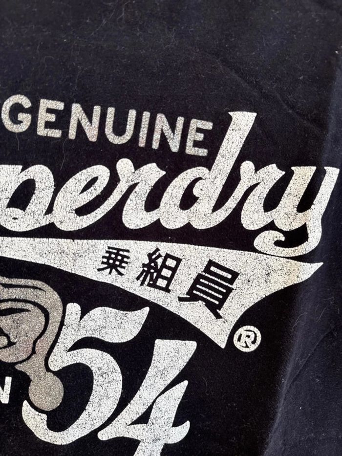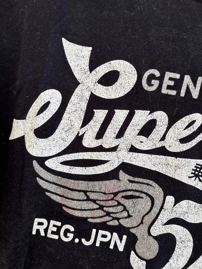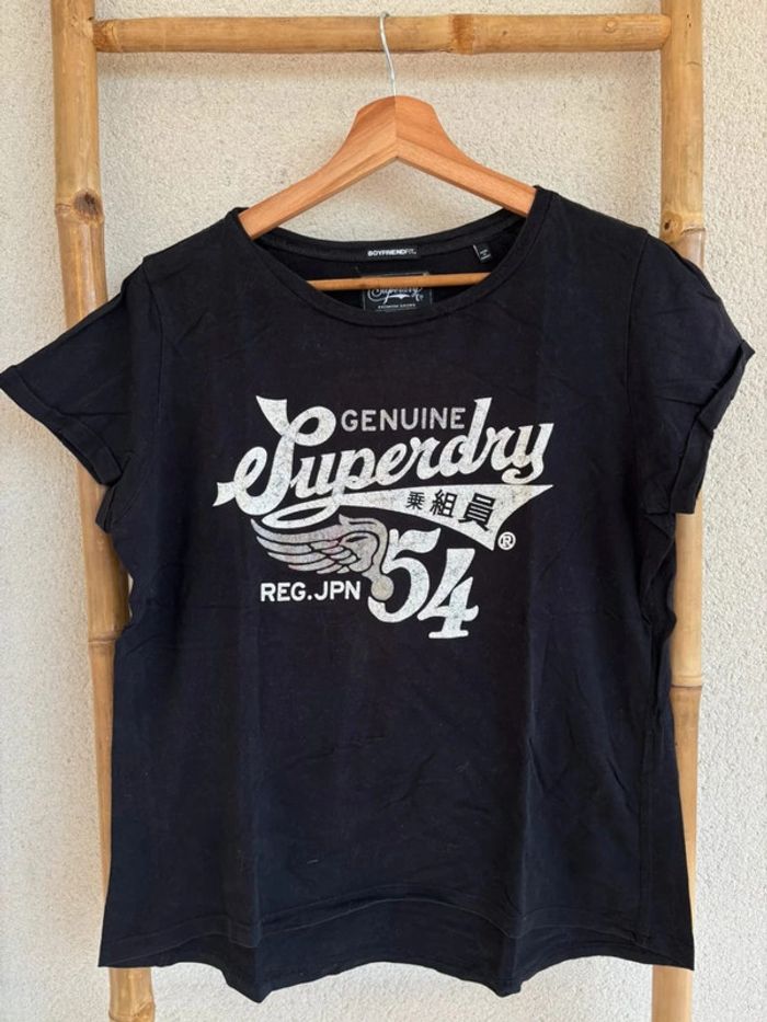T-shirt noir superdry taille S en bon état manches avec petit ourlet Les peluches et poils de chat seront retirés avant envoi, pas d’inquiétude