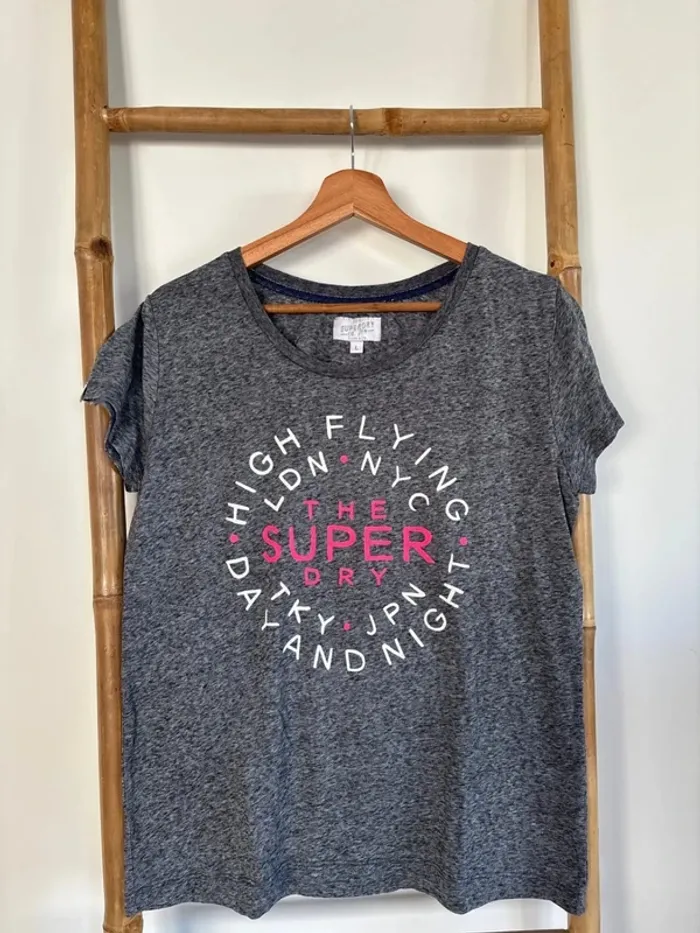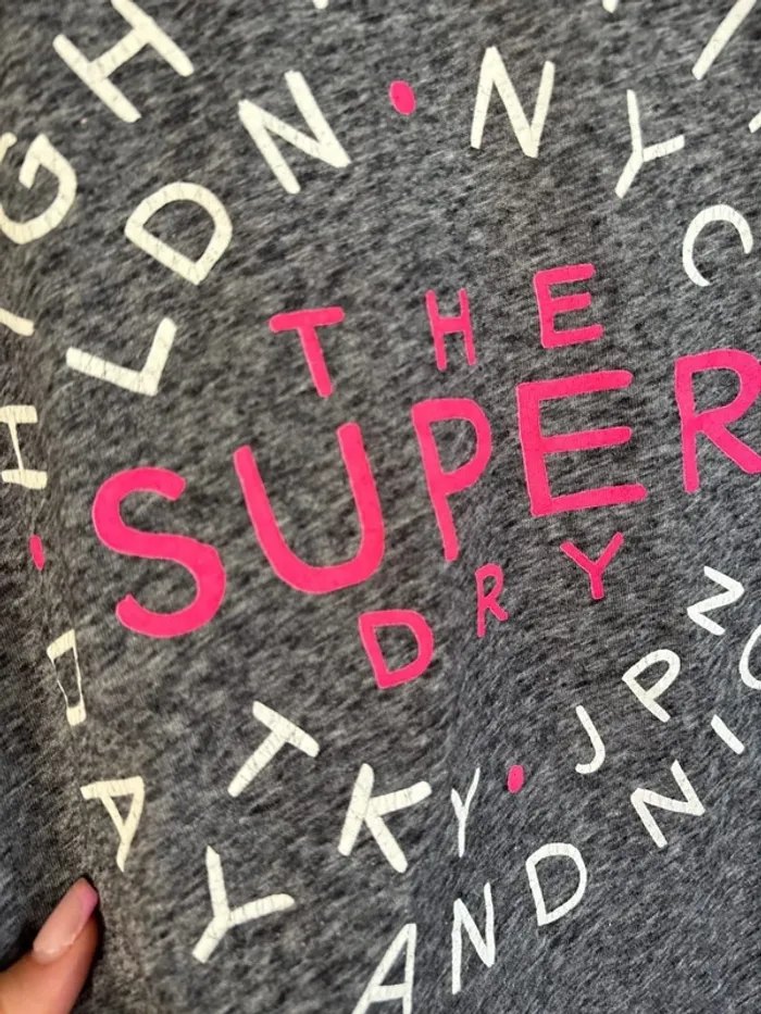 t shirt gris foncé superdry Taille L très bon état juste flocage un peu craquelé, voir photos