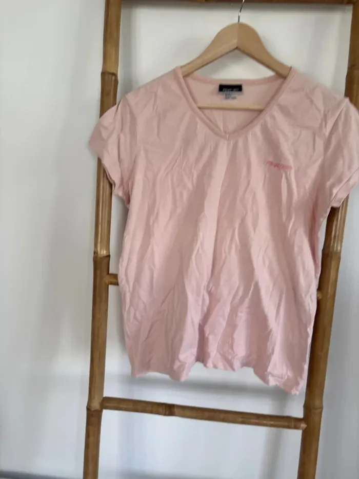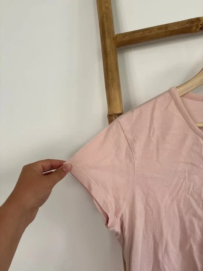 T-shirt rose pale à col V Vintage Reebok taille XL mais taille en réalité comme un M/L En très bon état t-shirt qui appartenait à une personne fumeuse, j’ai déjà fait un 1er lavage. Il faudra relaver pour enlever le reste d’odeur de tabac