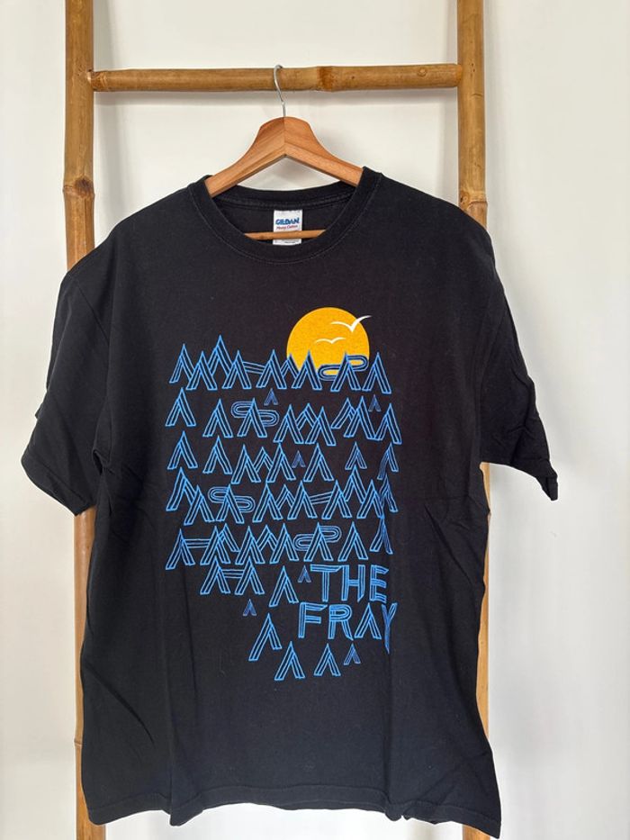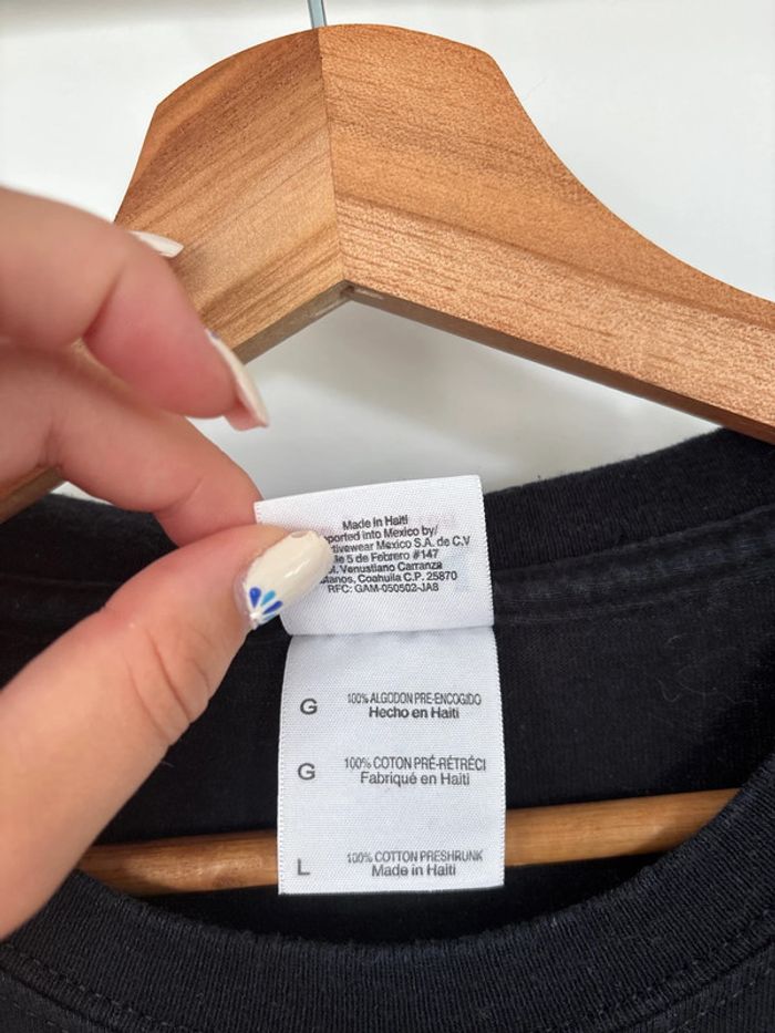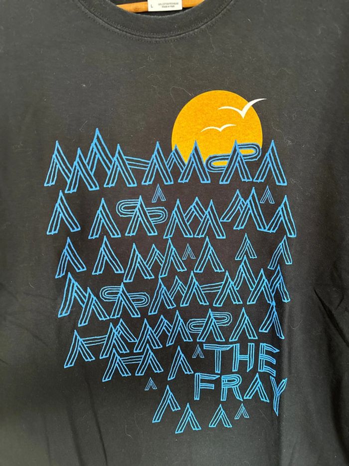 T-shirt noir 100% coton Motifs bleus et jaune En très bon état Taille L