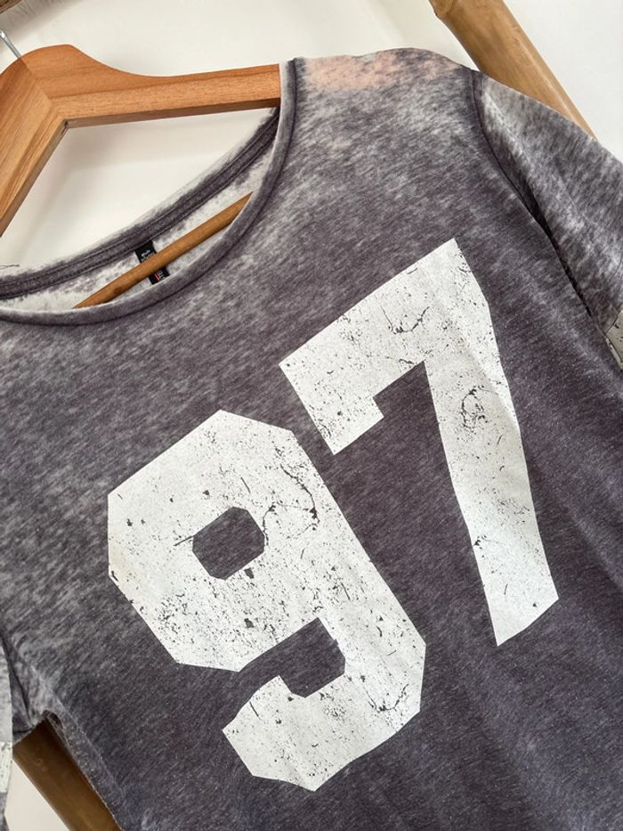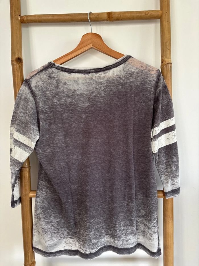 t-shirt à manches 3/4 gris et blanc - fb sister taille S - photo numéro 2