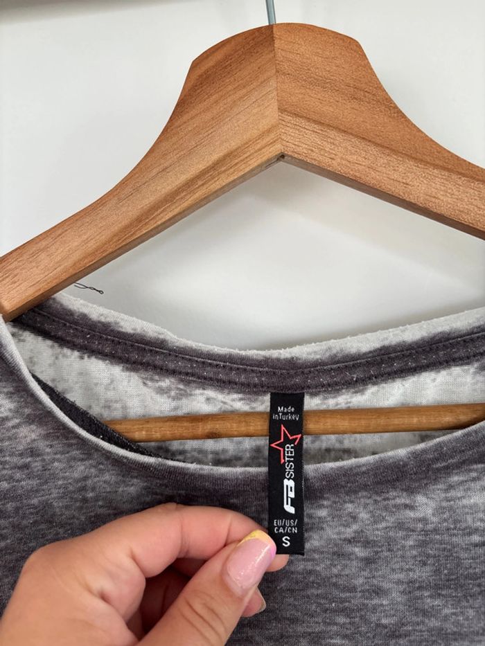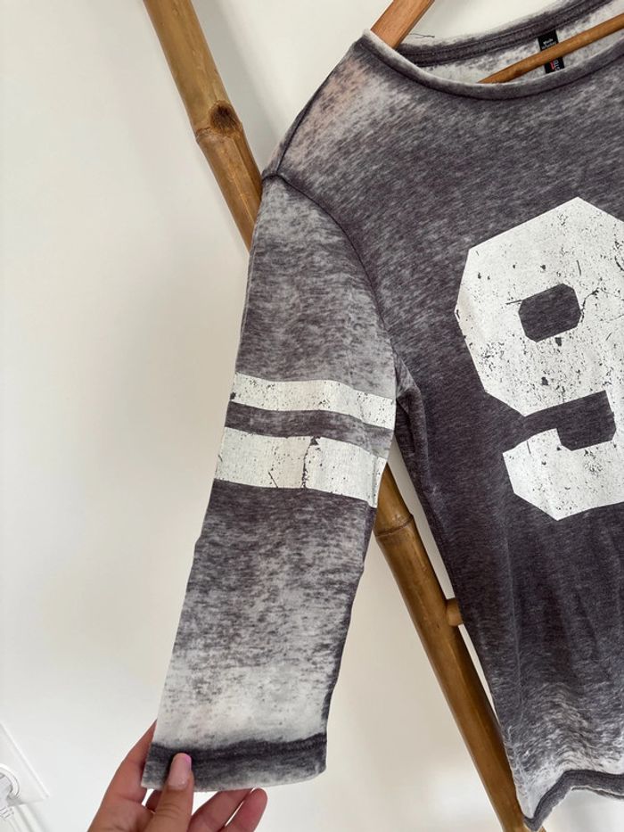 t-shirt à manches 3/4 gris et blanc - fb sister taille S - photo numéro 7