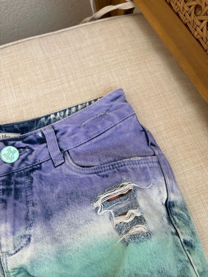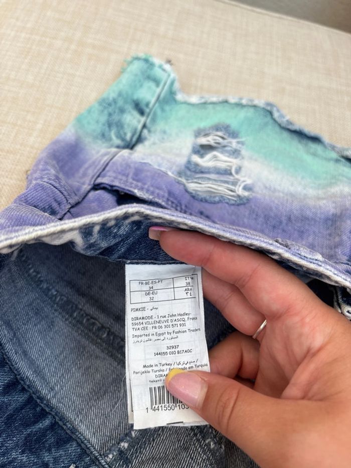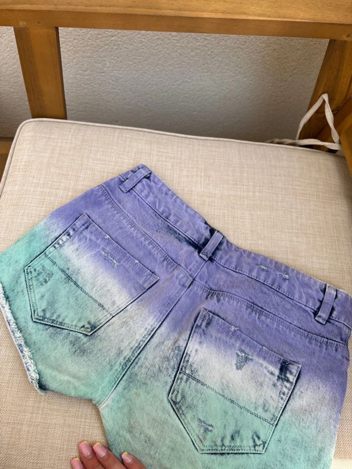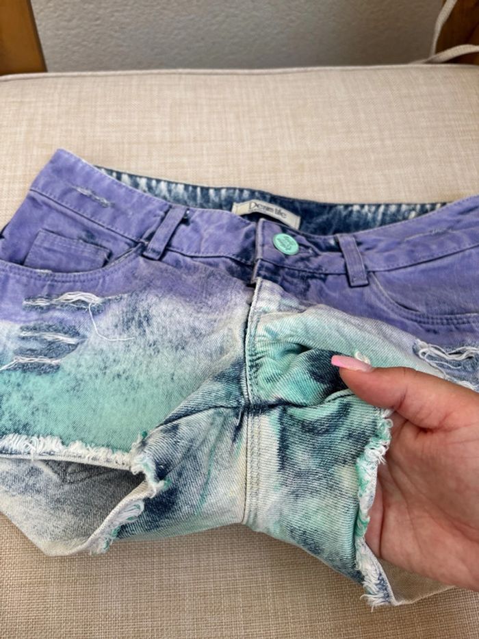 short tie and dye troué violet bleu vert en bon état (tache) Taille 34 Pimkie