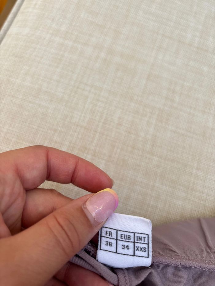 corsaire dim violet taille 36 en bon état (un fil tiré sur le devant de la jambe)