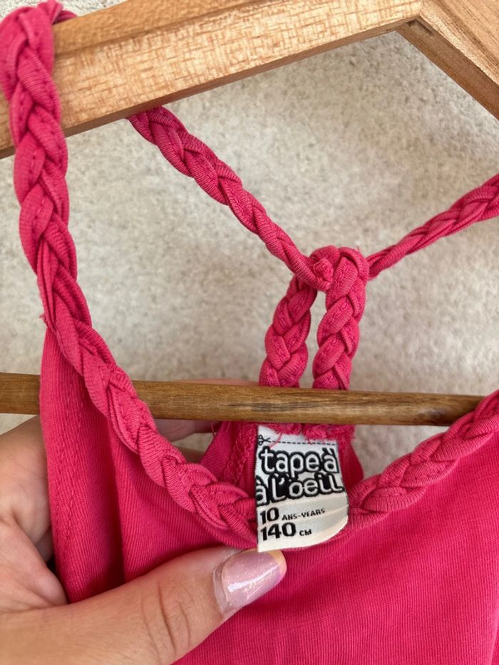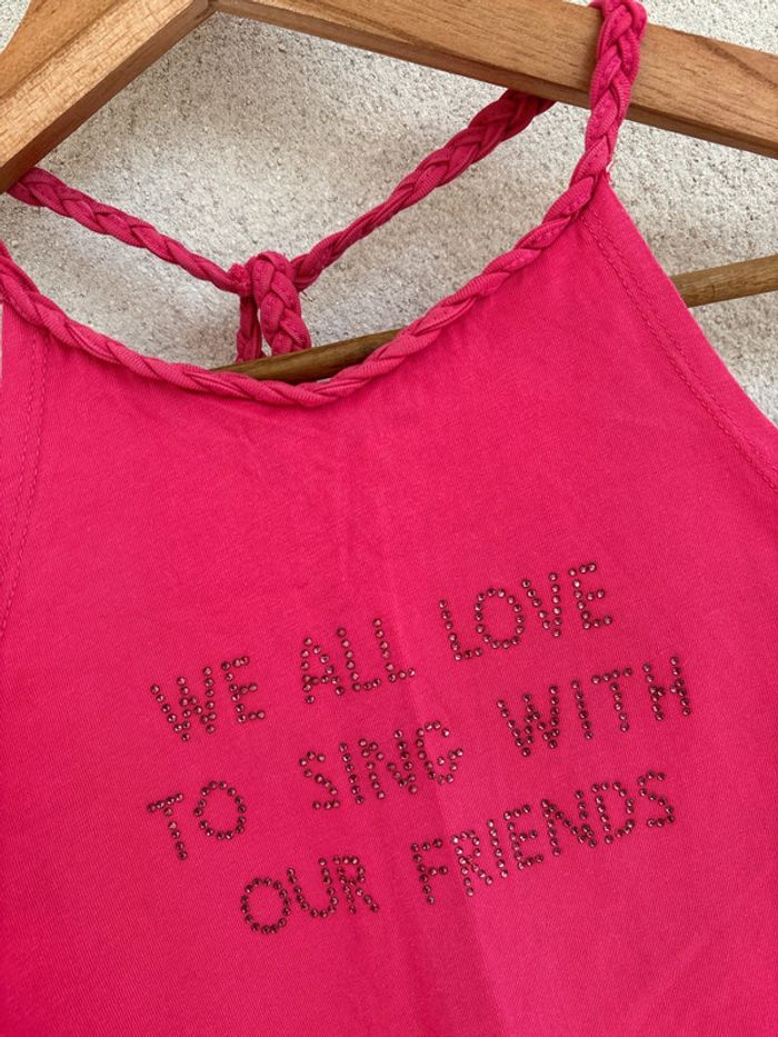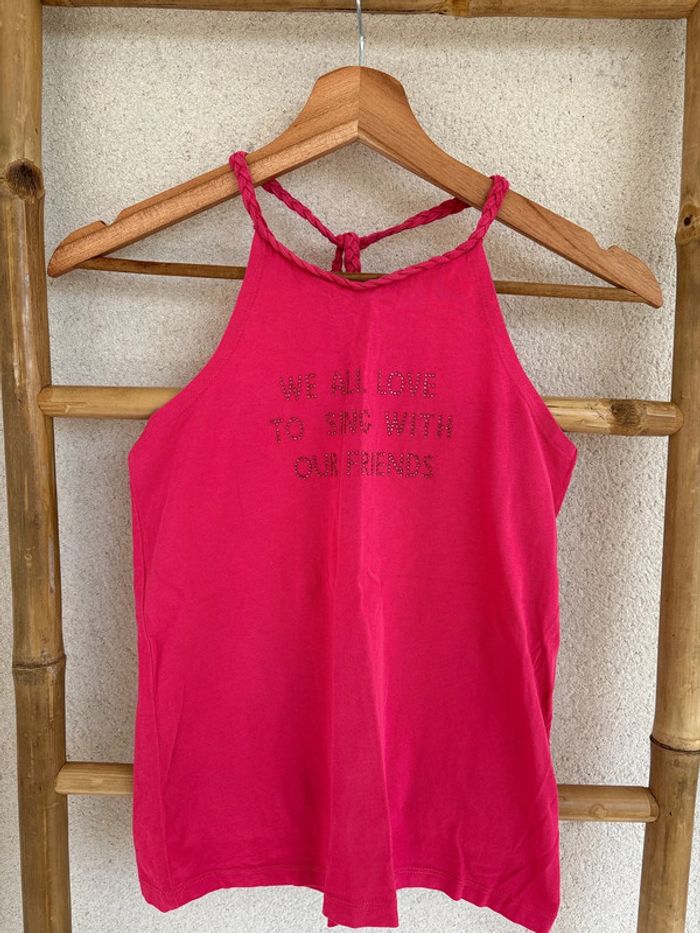débardeur rose à strass en très bon état (attention la lanière dans le dos se découd, il faudrait faire un point) Tous les strass sont présents tape à l’œil taille 10 ans