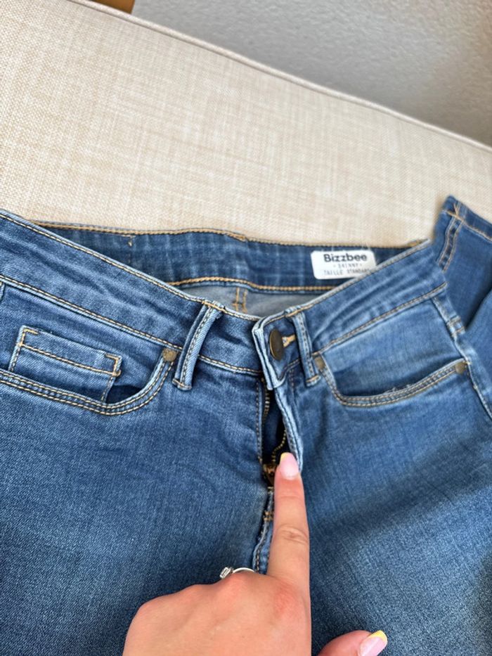 Jean skinny bleu Bizzbee Taille standard (ni haute ni basse) En très bon état voire neuf Étiquette de la taille coupée ( c’est un 32 ou 34)