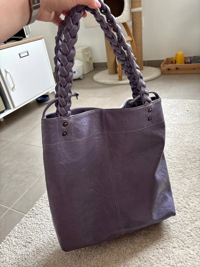 Sac cabas simili cuir violet à clous en bon état (qq taches extérieures voir photo) Sinon très bon état