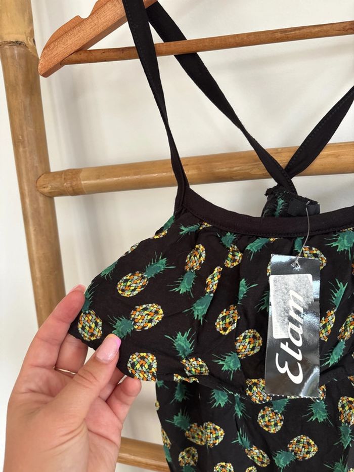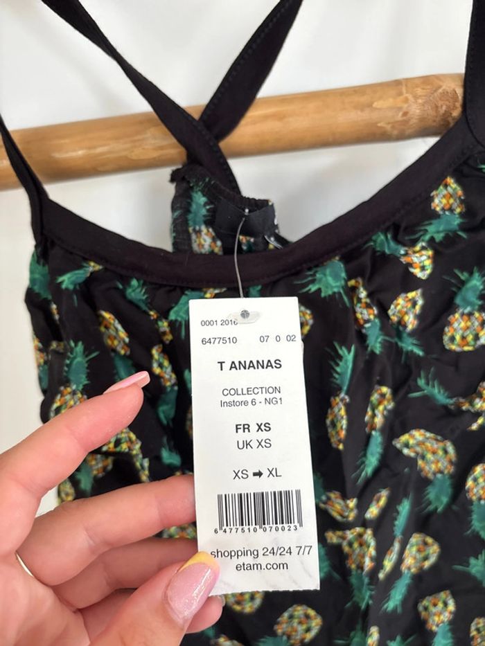 Débardeur noir avec des ananas croisé dans le dos Etam taille XS neuf avec étiquette