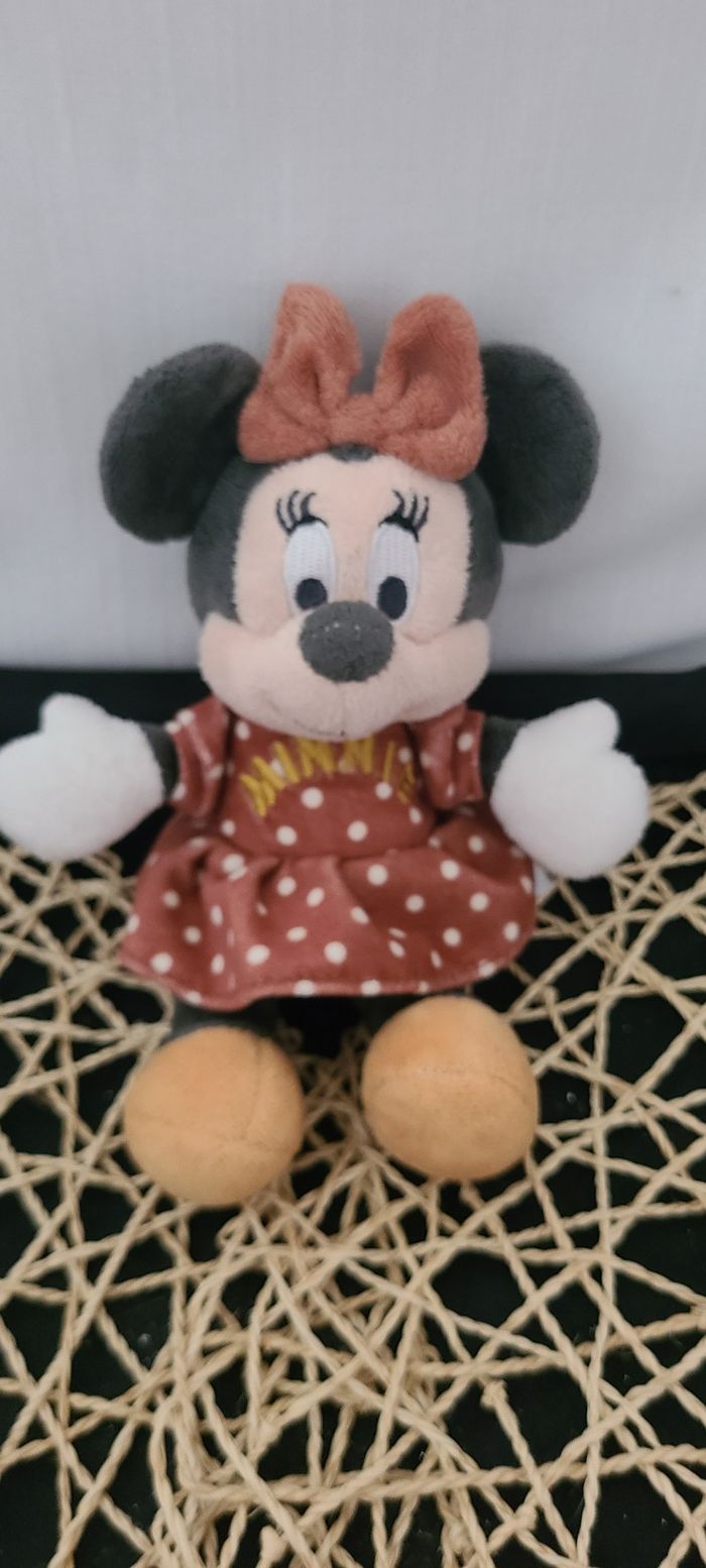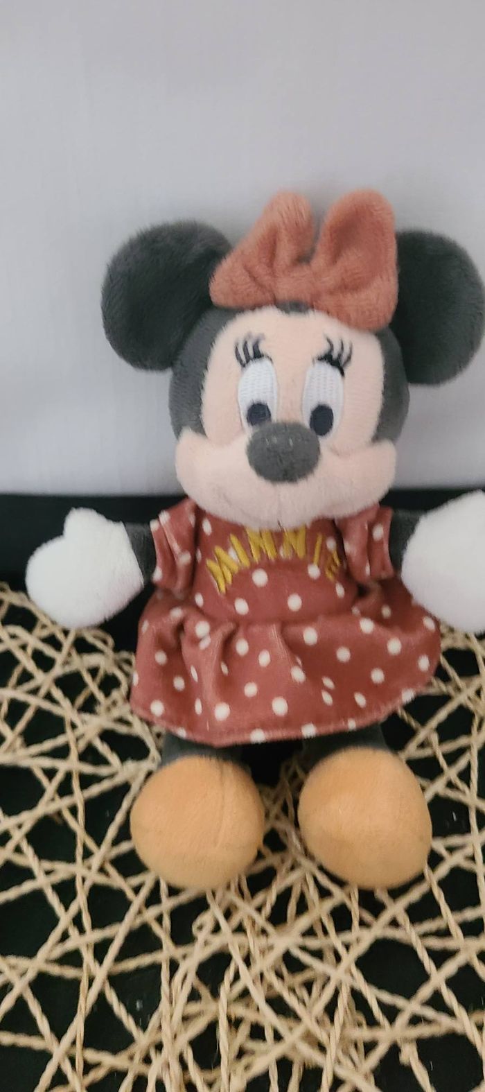 Doudou peluche Minnie 20 cm hochet grelot robe marron pois blanc disney baby 110