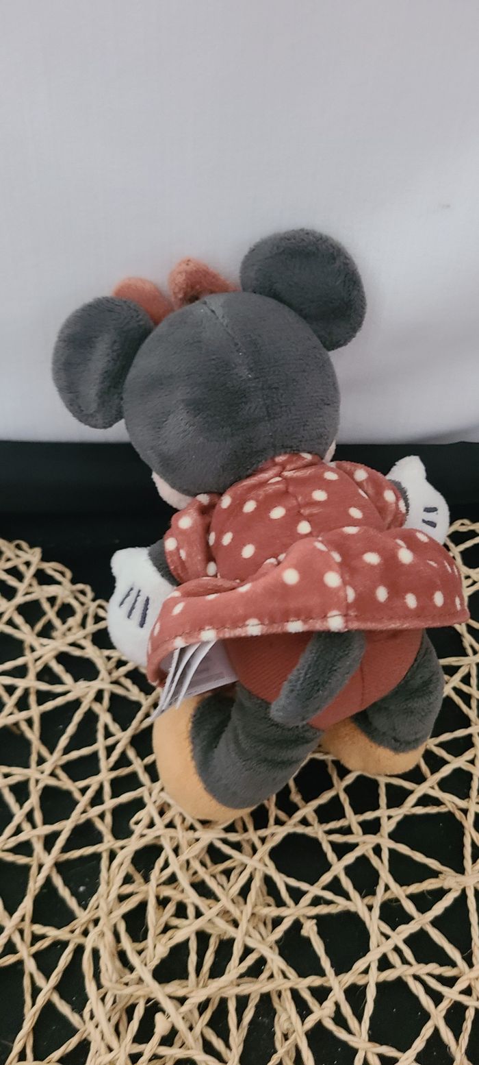 Doudou peluche Minnie 20 cm hochet grelot robe marron pois blanc disney baby - photo numéro 4