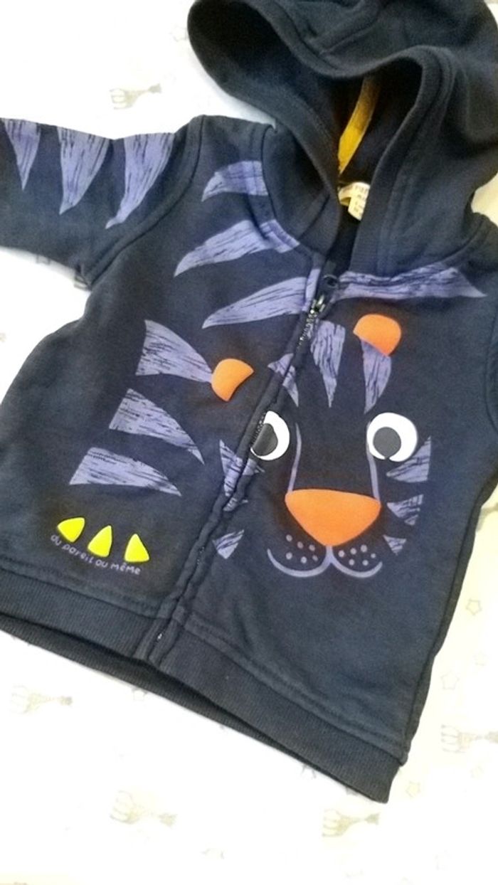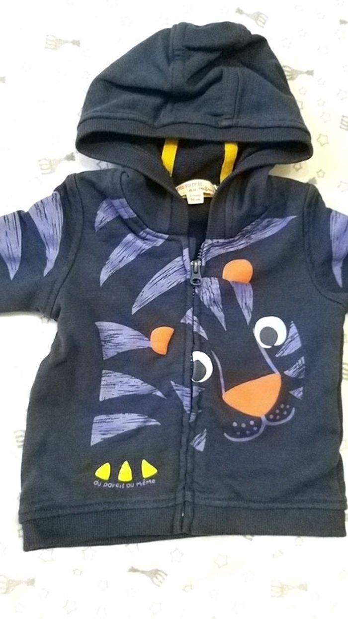 Tres jolie gilet neuf. Jamais porte juste lavé. Taille 3 mois bleu foncé avec dessins Tigre. Du pareil au même achète en magasin