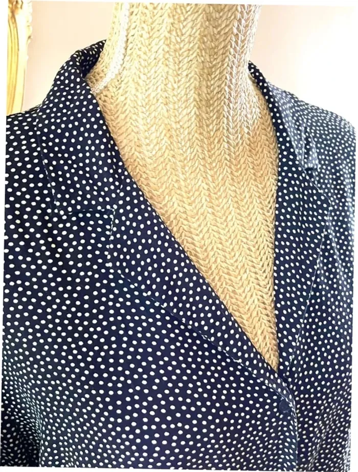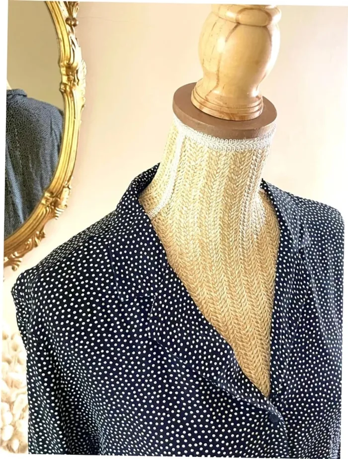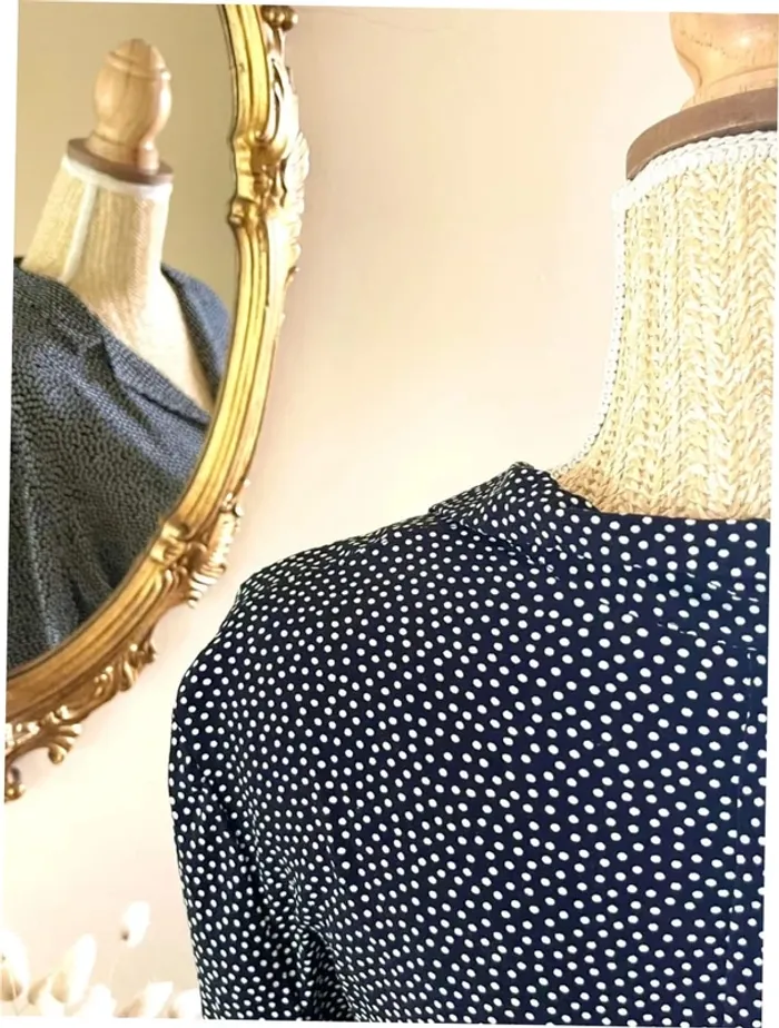 Sublime chemise manche longue à boutonnage et col noir et blanc style plumetis à pois - photo numéro 8