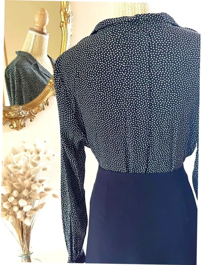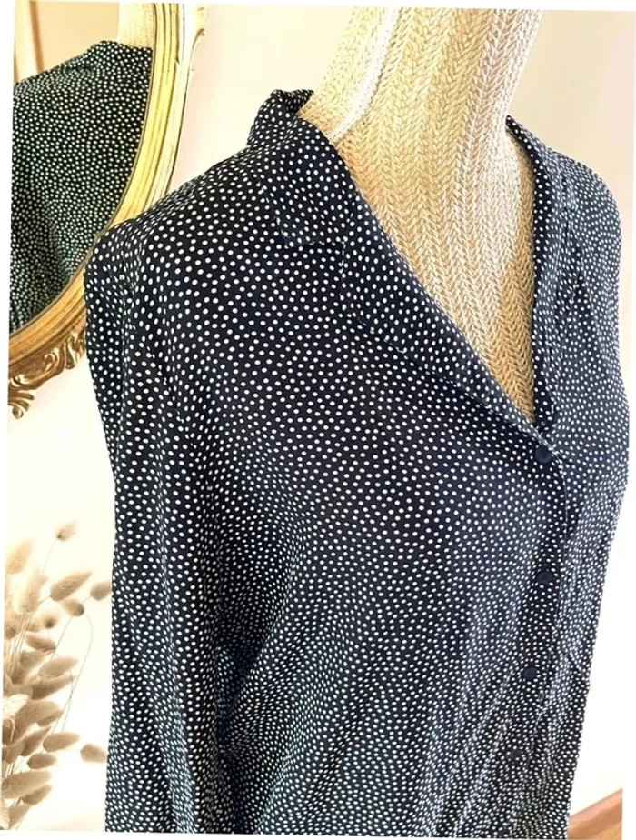 Sublime chemise manche longue à boutonnage et col noir et blanc style plumetis à pois - photo numéro 7
