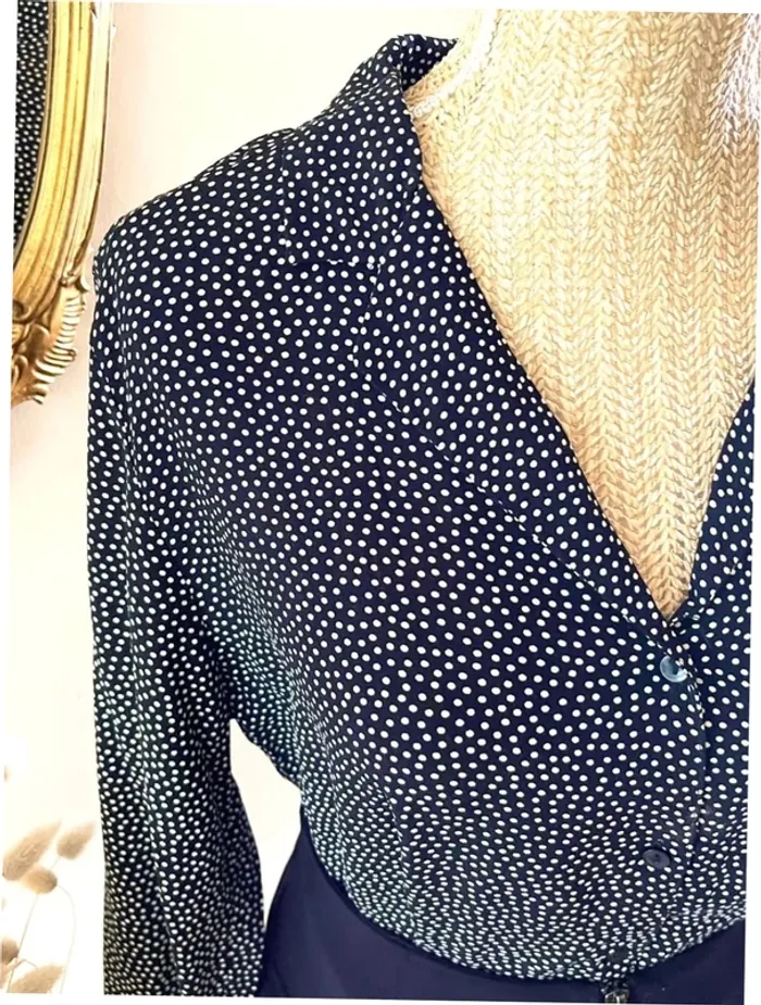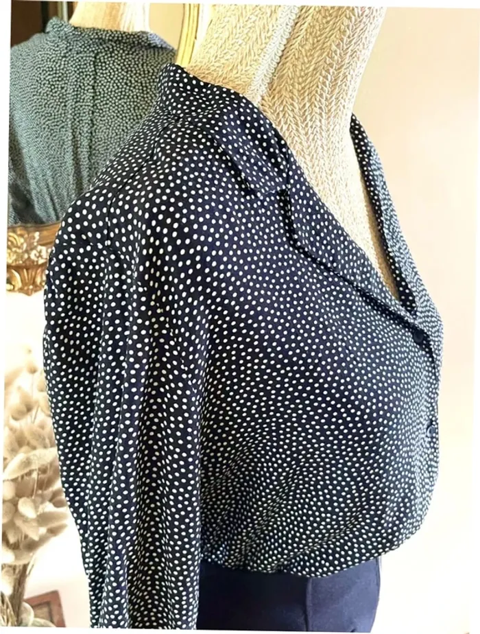 Sublime chemise manche longue à boutonnage et col noir et blanc style plumetis à pois - photo numéro 6