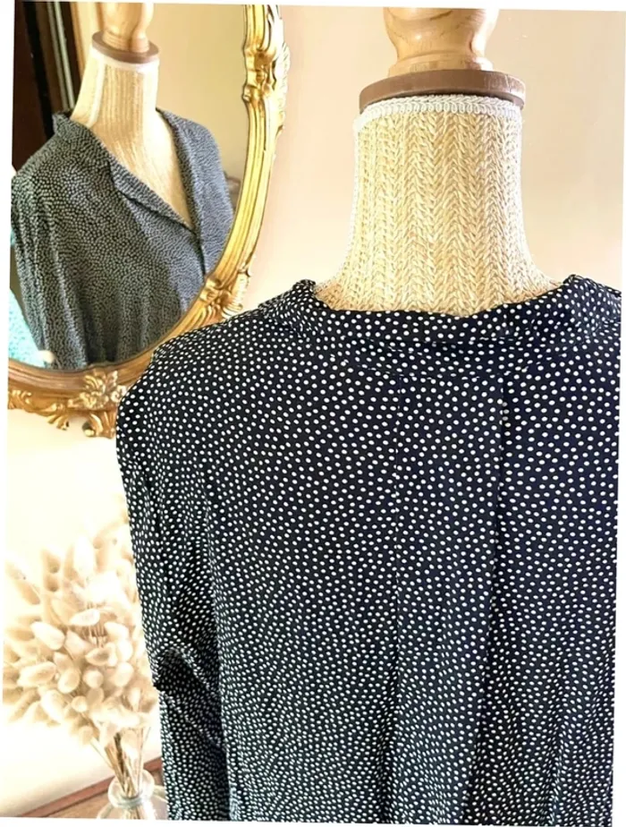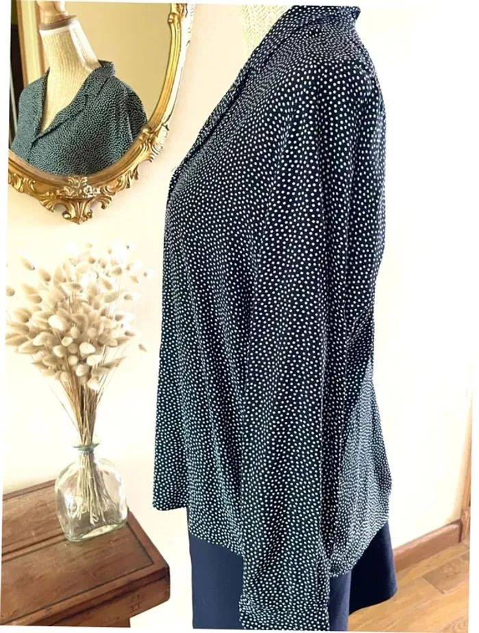 Sublime chemise manche longue à boutonnage et col noir et blanc style plumetis à pois - photo numéro 14
