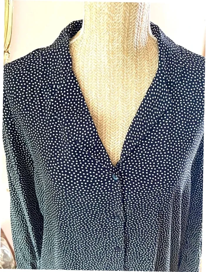 Sublime chemise manche longue à boutonnage et col noir et blanc style plumetis à pois - photo numéro 2