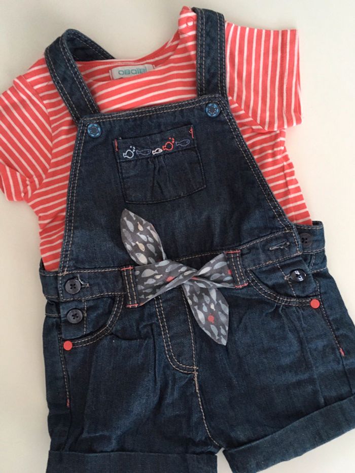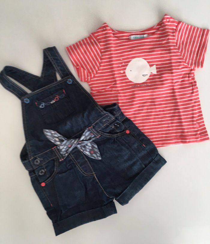 Ensemble jamais porté . T shirt manches courtes . Robe salopette en Jean .