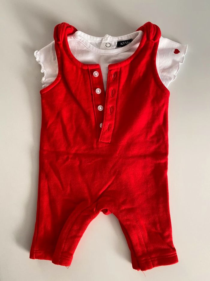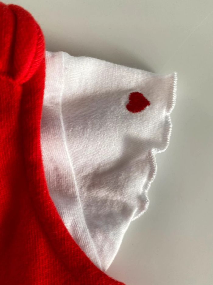 Très bon etat Un t d’histrionismes manches courtes blanc et une salopette rouge toute douce .D autres articles dans mon dressing dans cette taille . remises activées