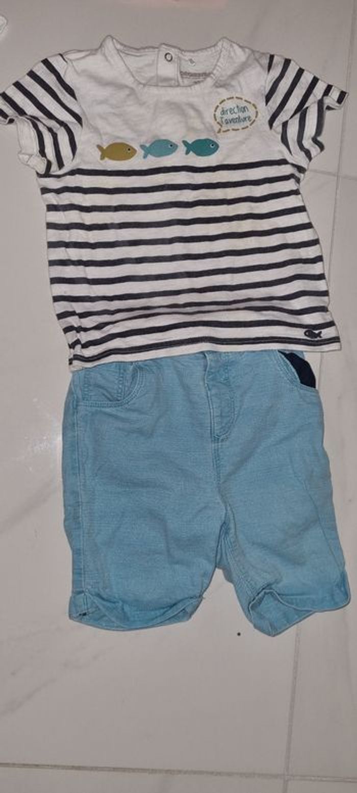 Lot en parfait état, lavés juste besoin d'un petit coup de repassage comprenant : - 1 ensemble disney short t shirt roi lion 23 mois - 1 ensemble disney mickey short t shirt 23 mois - 1 ensemble short t shirt orange body disney winnie short orchestra 23 mois - 1 ensemble short t shirt poisson bleu orchestra 23 mois - 1 lot de 3 t shirt basics orchestra Je donne avec un bob bleu marine et une casquette safari beige taille 18/24 mois Le tout est en parfait état porté quelques fois l'été dernier par un seul enfant, tout est de la collection de l'été dernier Je vends le lot 17€ et il est indissociable
