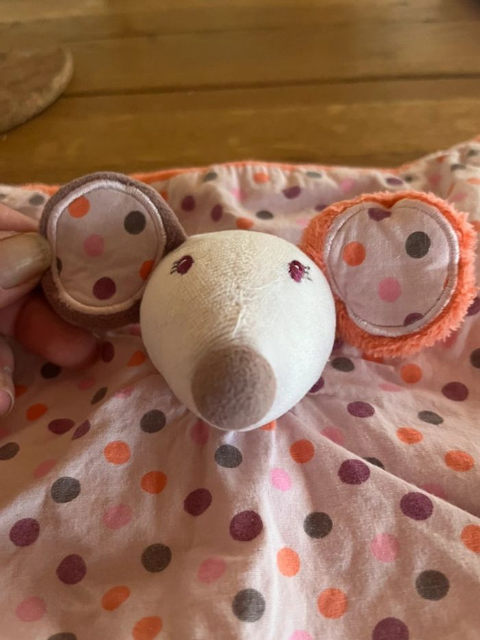 Doudou souris abricots à pois en très bon état