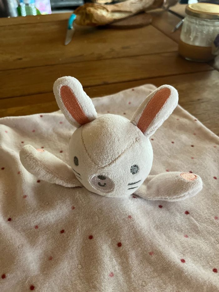 Doudou lapin rose pale à pois en velours - photo numéro 1
