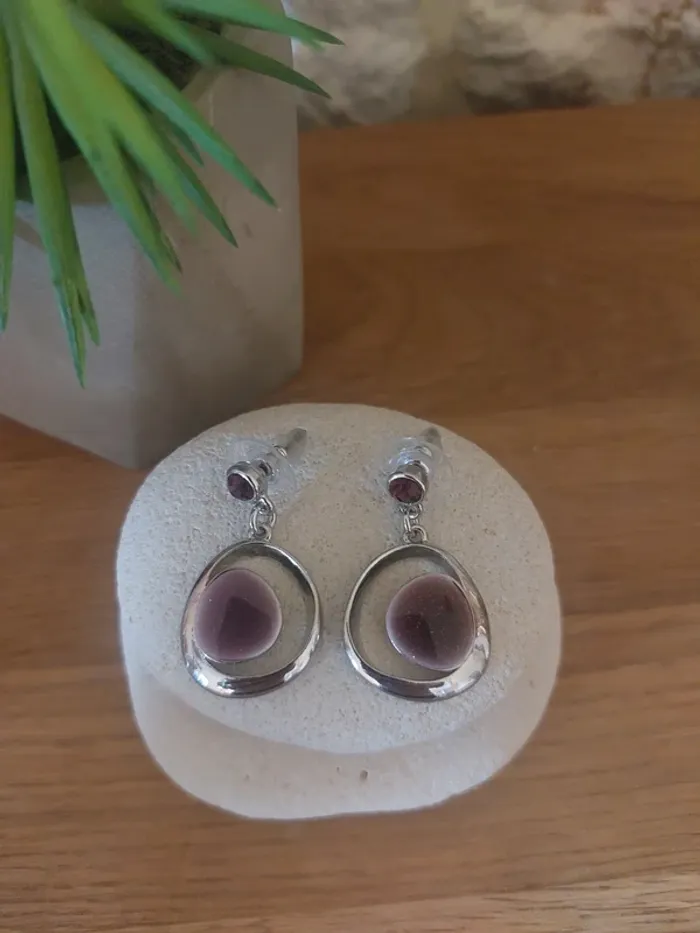 Joli boucles d'oreilles avec pierres violettes comme neuve car jamais portées Idéales pour un cadeau 🎁 de Noël 🎄 🎅 📿#bouclesoreilles_stef290574