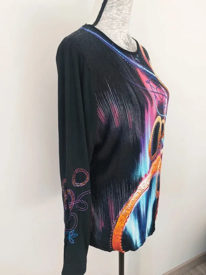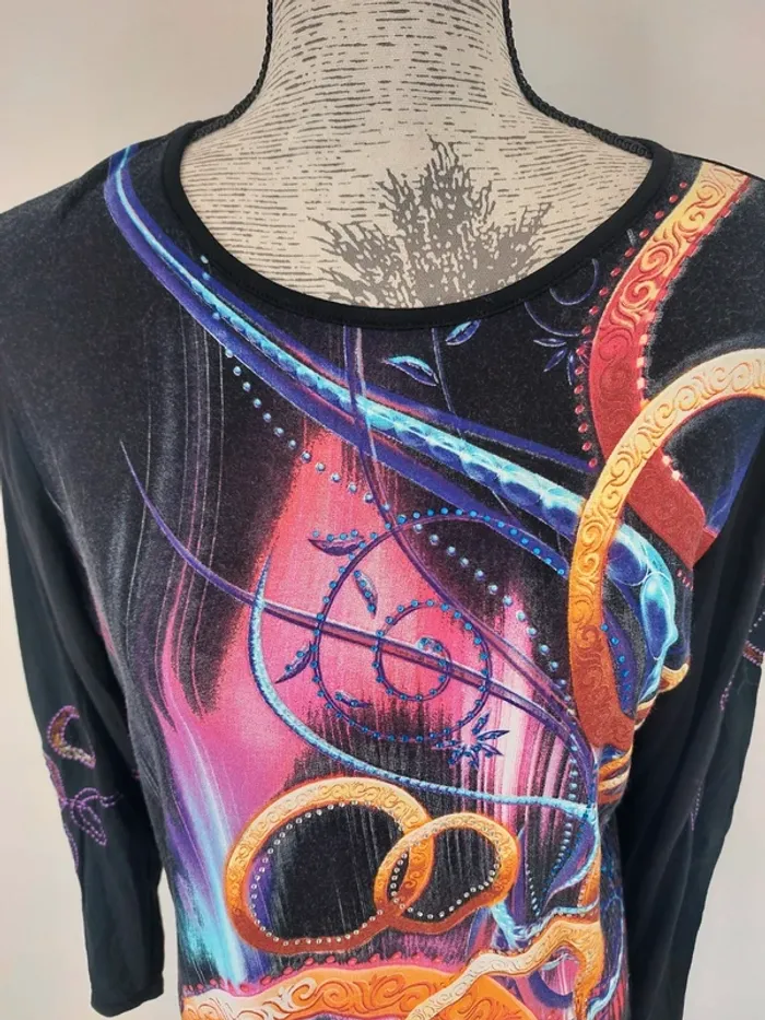 Haut fantaisie. Tres bon état car peu porté. aisselle à aisselle 52cm 👚#hauts_T38_mlong_stef290574