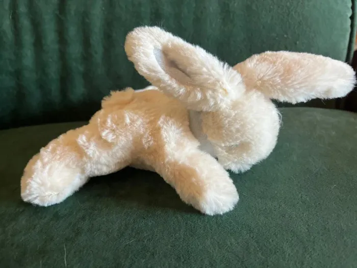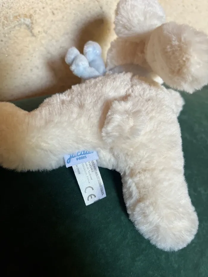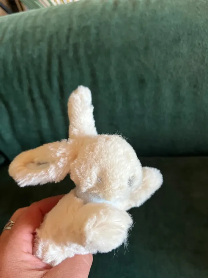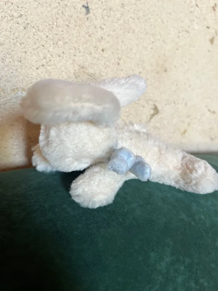 Lapin tout doux jacadi creme Les oreilles et son foulard sont bleus
