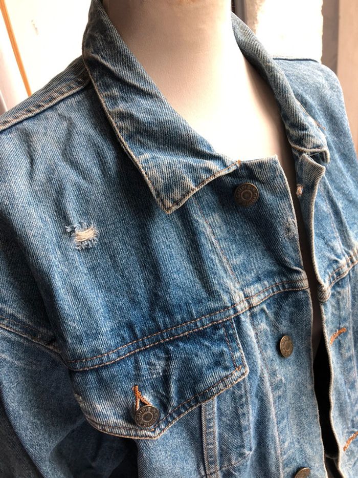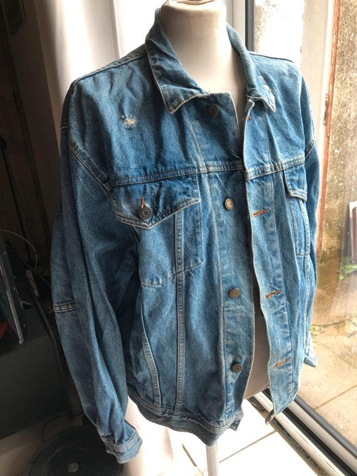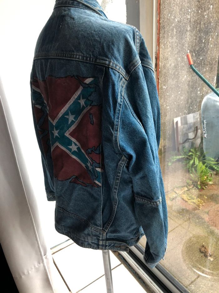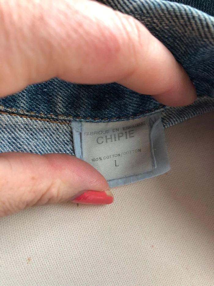 Veste en jean chipie vintage avec un drapeau dans le dos Poches intérieures en bon état Article d’occasion incroyable