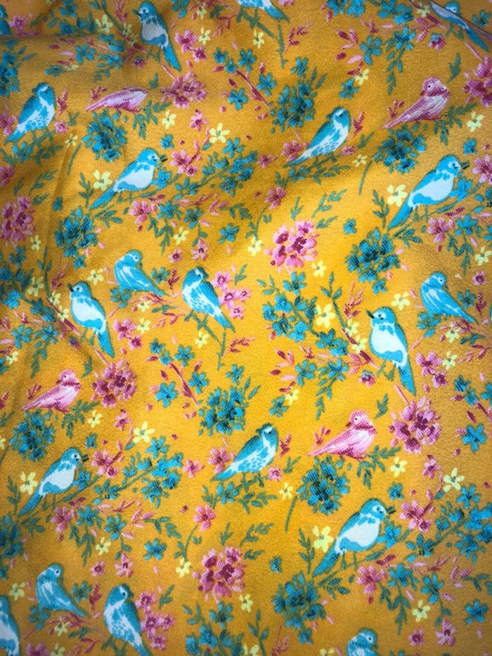 Nuisette jaune motif oiseaux et fleurs