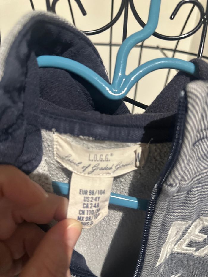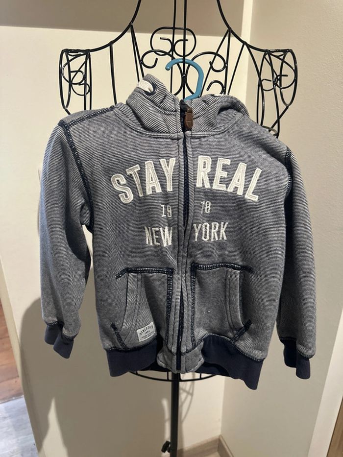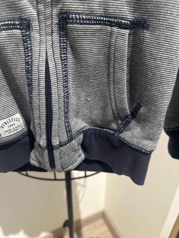 Veste à capuche. Un petit accroc sur la poche mais se voit très peu. Taille 98/104 cm