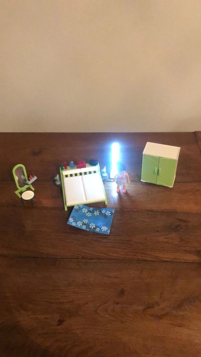 playmobil 9271 chambre. la lumière fonctionne. sans boîte ni notice.robes interchangeables très bon état