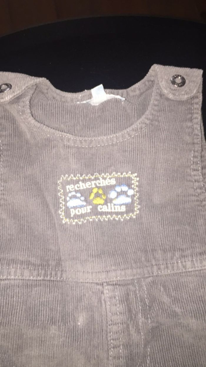 Salopette en velours ouverture par pression à l’entre jambes très bon état 3 mois