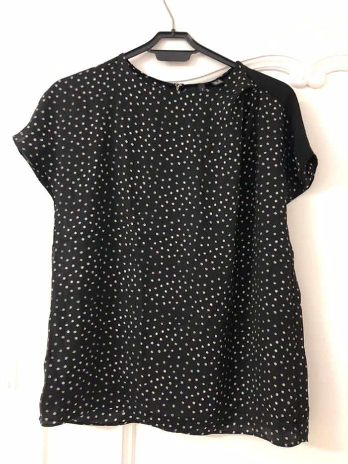 T-shirt blouse Manches courtes 36 noir et pois - photo numéro 1