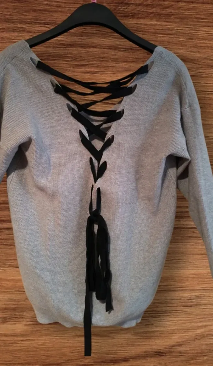 💖 Confortable, doux et ultra tendance 🖤 Détail original avec lacets noirs au dos pour un look unique 👚 Taille unique, convient à plusieurs morphologies 🌟 Parfait pour la mi-saison ou pour superposer avec une veste 🔹 Matière agréable et facile à porter au quotidien 🔹 Couleur grise neutre, facile à assortir avec tout 🔹 État impeccable, comme neuf ! 👉 Idéal pour un style casual-chic qui sort de l’ordinaire ! N’attends plus, ce pull va vite trouver preneur ! 🚀
