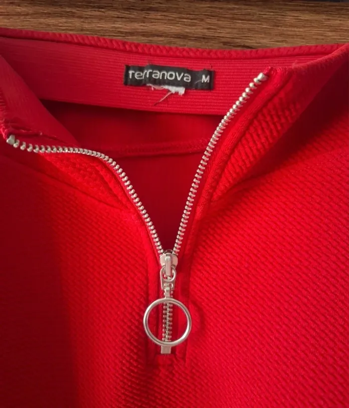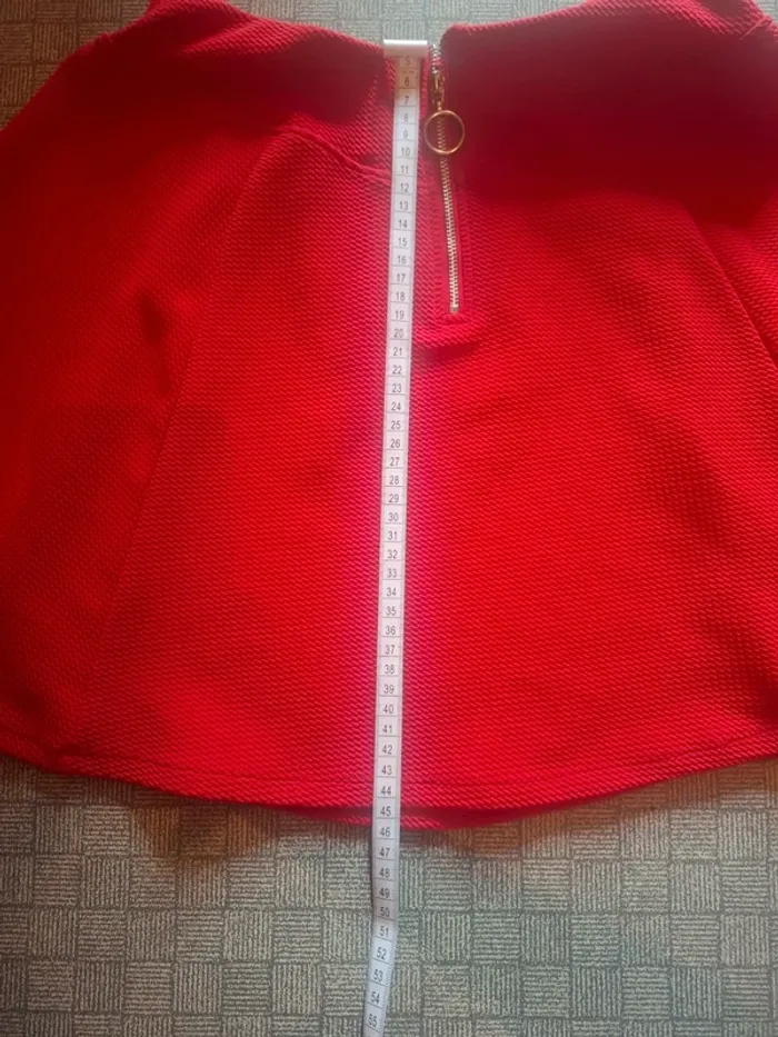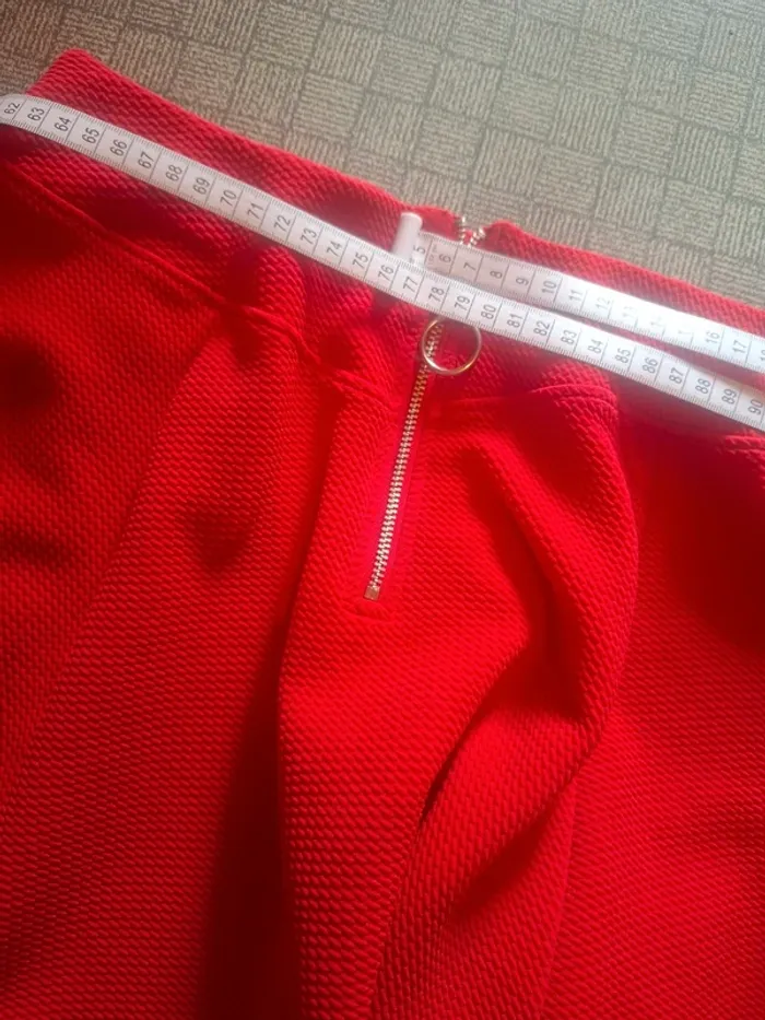 🔥 Cette jupe rouge pétillante est parfaite pour booster ton look ! Sa matière texturée et son zip avec anneau métallique ajoutent une touche tendance et unique.