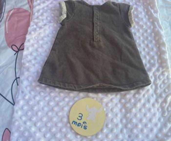 Robe bébé manches courtes mi saison Taille 3 mois . Porter 1 fois . Très bon état .