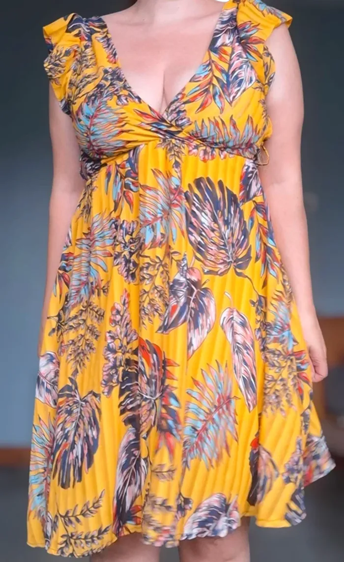 📸 Voir les photos pour les détails ! Cette magnifique robe jaune à imprimé feuillage coloré est parfaite pour l’été 🌴☀️ Coupe fluide et légère, idéale pour les journées chaudes ou une soirée estivale 🥂 💛 Taille marquée sous la poitrine pour une silhouette flatteuse 💃 Décolleté en V féminin et petites manches à volants adorables 📏 Taille : pas d'étiquette de taille mais correspond à une taille M 📦 Très bon état 📍 Doublée à l’intérieur, donc pas transparente 👌 💸 Prix mini pour un look maxi effet ! Fais-toi plaisir ou déniche la pépite pour ta valise de vacances 🧳🌞 📬 Envoi rapide & soigné 💌 N’hésite pas à me poser des questions #robe #été #vintage #tropical #jaune #vacances #lookestivale #sexy
