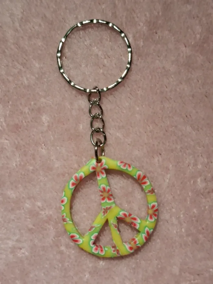 Ajoute une touche de good vibes à ton trousseau avec ce porte-clés en forme de symbole peace 🌈 Motif fleuri 🌺 sur fond jaune/vert, parfait pour les fans de style bohème ou vintage ! 🎶✨ 🔸 Léger et original 🔸 Matière : plastique résistant 🔸 État : Comme neuf 🆕 💖 Idéal comme petit cadeau ou pour pimper ton sac à dos, sac à main ou trousse 🎁 📦 Envoi rapide et soigné ! 🤑 Petit prix = maxi style !