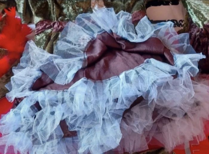 Fait à la main et sur mesure Le déguisement comprend - la robe - les jambières - un mini short - un chapeau Ideal pour carnaval, spectacle, danse, défilé, majorettes,...