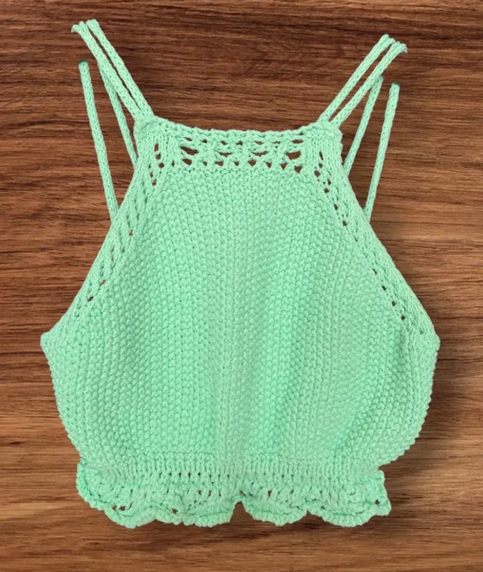 🌸 Top en crochet vert menthe - Taille 7 (122 cm) 🌸