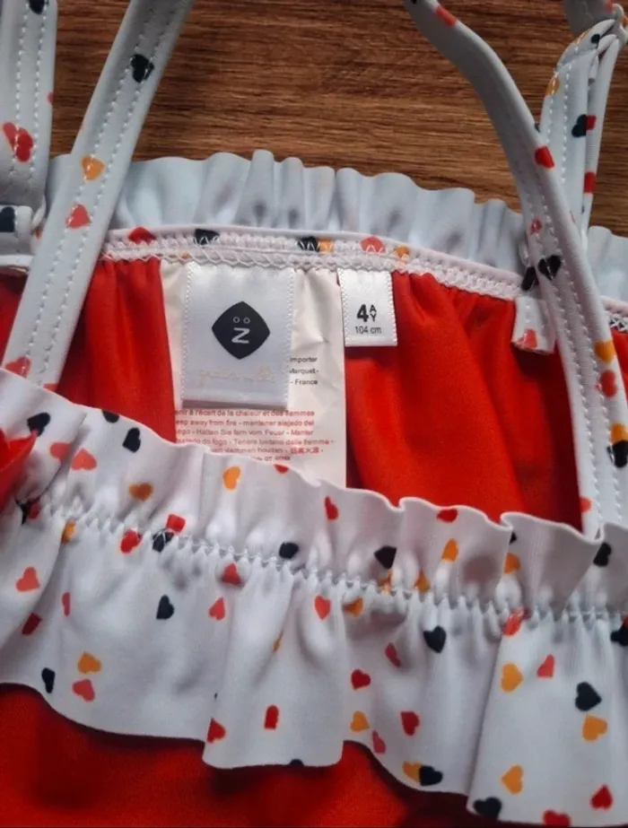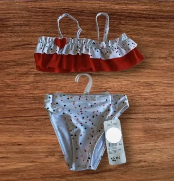 🌞 Parfait pour l’été ! Ce joli bikini est idéal pour les petites fashionistas 🏖️ ✨ Haut à volants avec détail cœur rouge ❤️ ✨ Bas assorti avec imprimé cœurs colorés 🧡🖤❤️ 📏 Taille : 4 ans / 104 cm 🆕 État : Neuf avec étiquette 🏷️ 💶 Prix d'achat 12,99€ 💵 Prix de vente 7€ seulement ! 🎁 Idéal pour la plage, la piscine ou les vacances ☀️ 📦 Envoi rapide & soigné ✉️ 💬 N’hésite pas à me poser des questions !