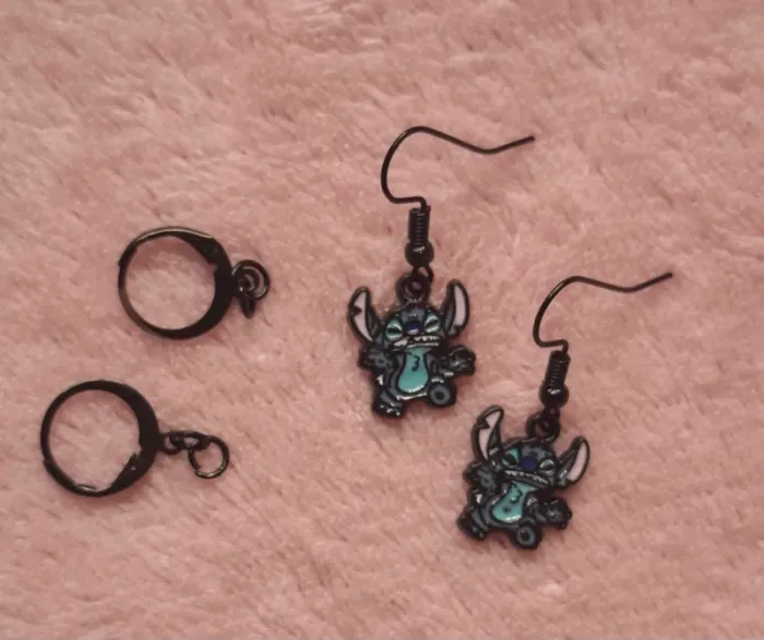 Adorables boucles d’oreilles à l’effigie de Stitch 💙 Vous avez le choix entre deux types d’attaches : Crochet classique Attache anneau (type dormeuse) ✨ Les pendentifs peuvent être montés sur l’attache de votre choix, selon vos préférences. 📦 Envoi rapide et soigné. 🆕 Jamais portées. N’hésitez pas à me contacter pour toute question ou demande ! 🌸