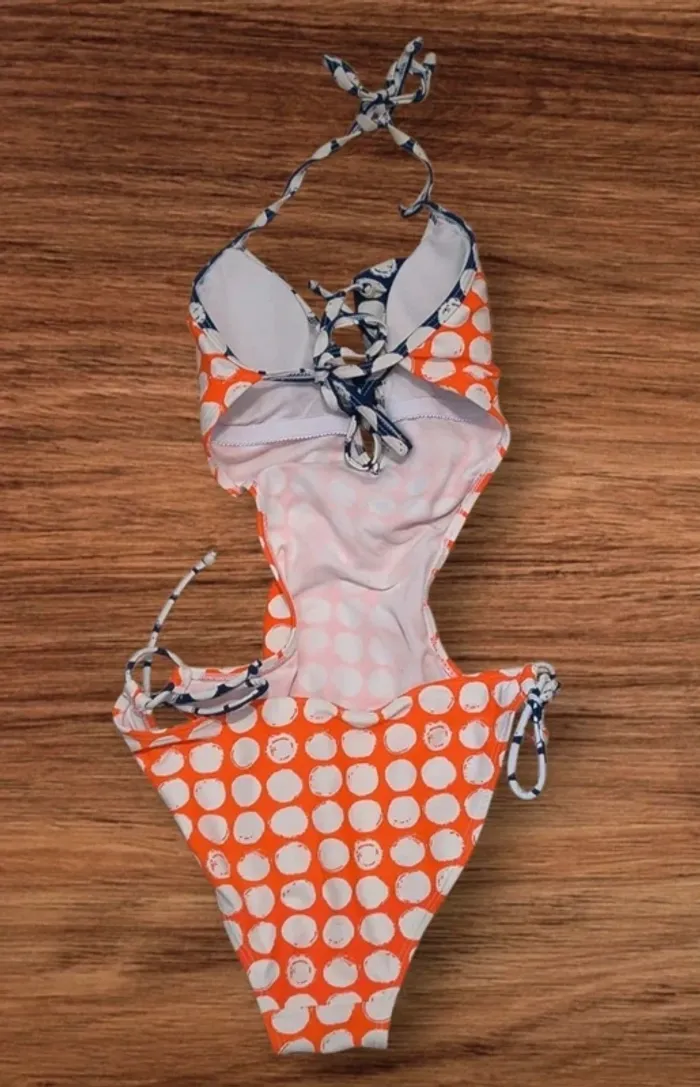 👙 Maillot de bain 1 pièce à pois – style rétro 🧡💙 - photo numéro 3