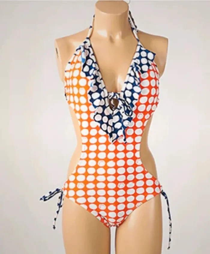 👙 Maillot de bain 1 pièce à pois – style rétro 🧡💙 - photo numéro 1