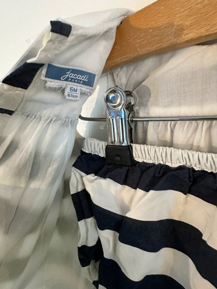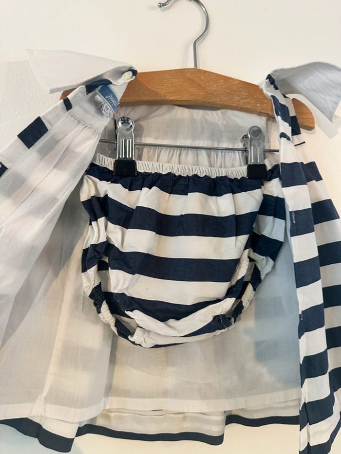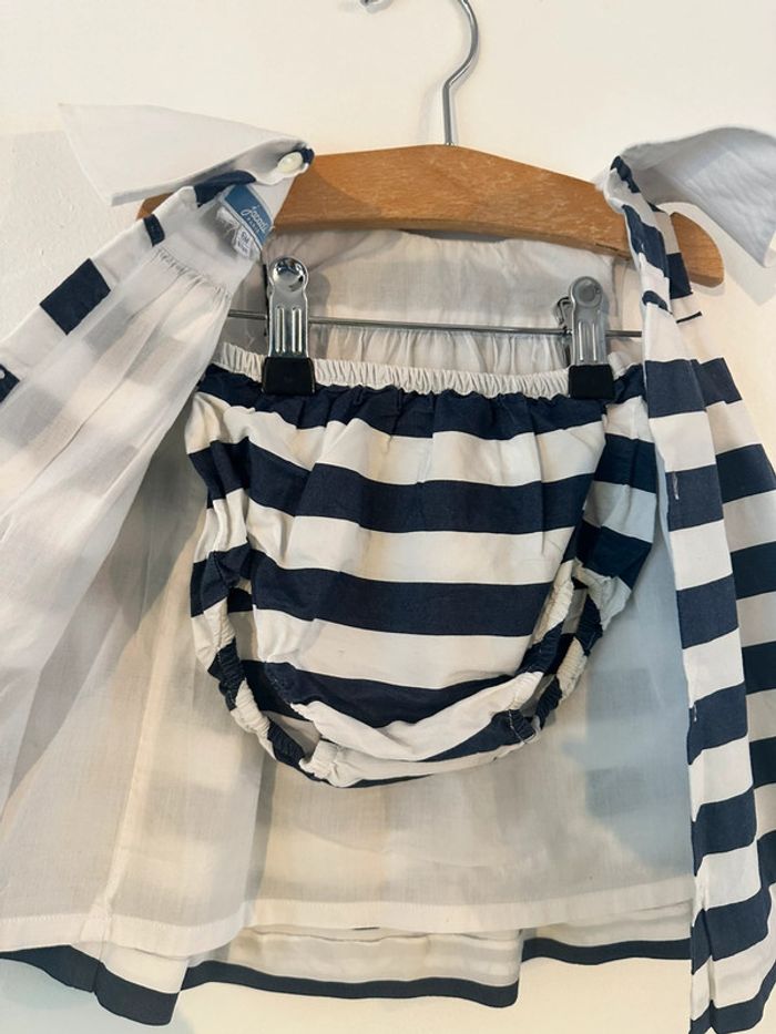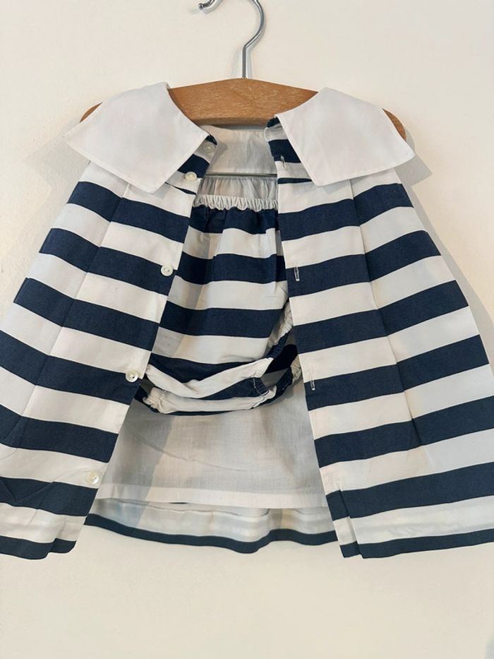 Superbe robe jacadi et sa culotte thème marinière le bleu de la robe et la culotte et un peu moins vif voir photos