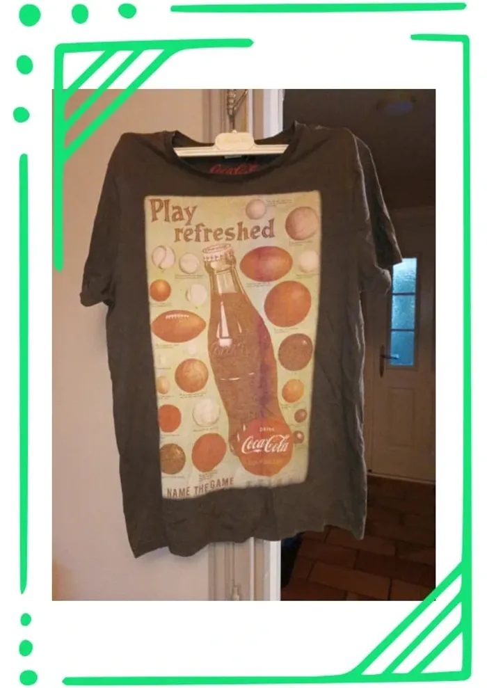Tee-shirt homme gris foncé, avec imprimé coca cola très bon état, taille S #audreyg13390hommetaillesml