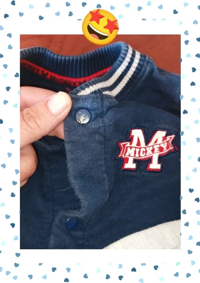 Jolie veste sweat Teddy , avec Mickey, dessin dans le dos magnifique, quelques trace de frottement sur le 1 er bouton #audreyg1339018mois #audreyg1339024mois